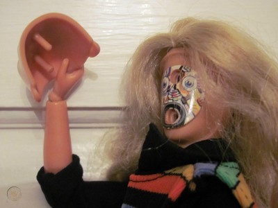 BELOW: FemBot hits both faceless mask and transhuman cyborg. Movie "Face-Off" (starring suspected vampire John Travolta) hits this nail on its tranhumanic face, er head.