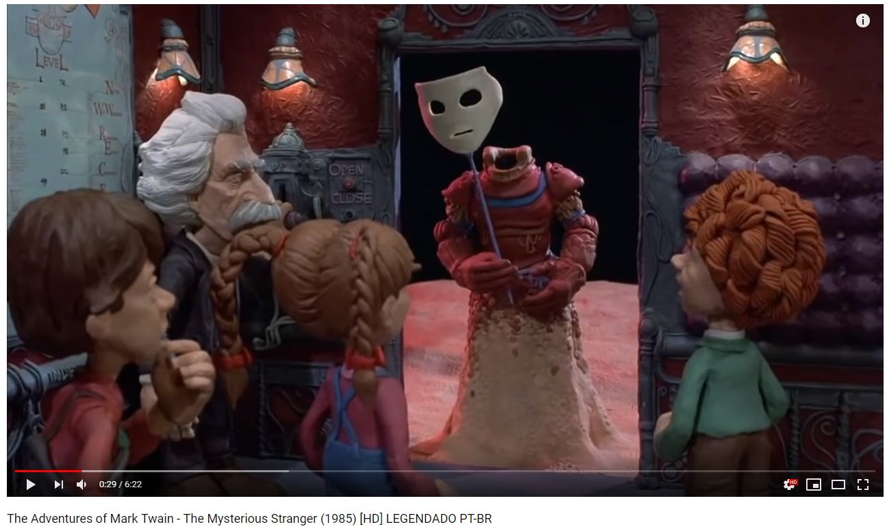 BELOW: Cartoonic Disturbia: 1985 Mark Twain, Masked Satan, and Claymation. Molding your children from youngest ages to tolerate, accept, revere, admore, embrace Satan. Watch for yourself what They "program(med)"your kids with.