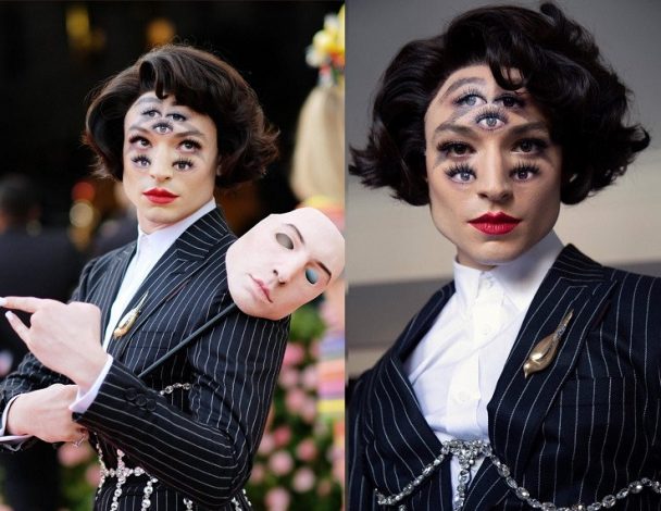 BELOW: Some freaky-vogueish mask and eyeball thing, in an endless mixing of weirdness.